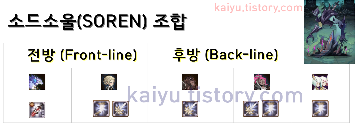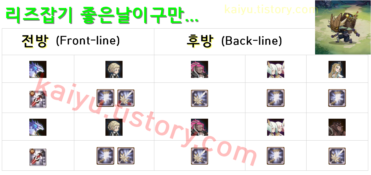 종족 버프를 감안한 현재까지 최상의 라인업이랍니다. 이 외 상황에 맞게 다양하게 전, 후방 라인을 조정할 수 있습니다. 참고용 덱입니다. 참고하실분들은 참고하세요.