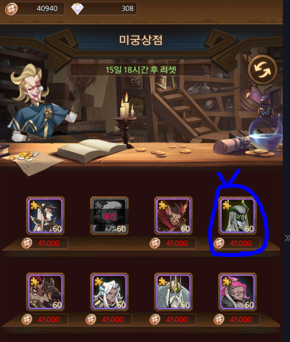 과금러-다이아가 넉넉한 경우 최소 리셋 2번을 해주며 영웅의 가루를 싸그리 산다.