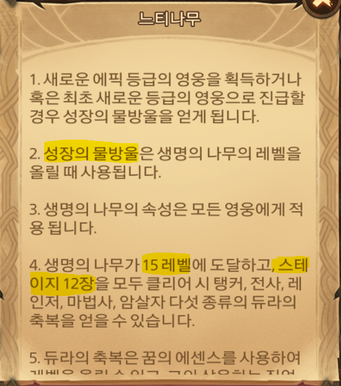 듀라의 축복은 꿈의 에센스를 통해서 레벨 업 할 수 있어요.