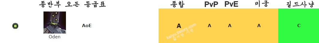 PvE,PvP,미궁에서 B등급이며, 리즈를 사냥하는부분에서는 A 등급입니다.