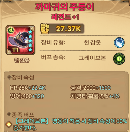 우선, 전설 장비를 비롯한 장비에는 종족 버프가 있답니다.