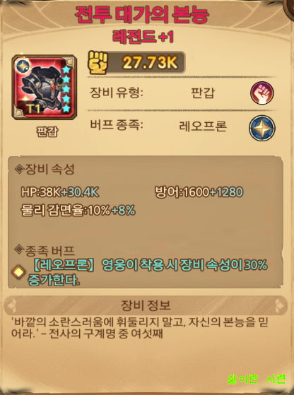 종족 버프가 붙지 않는 레전드 장비는 3강 이상 강화하는 것은 비효율적입니다. 챕터가 밀리지 않아서 어쩔 수 없이 강화하는 마지노선도 3강이 효율적이랍니다.