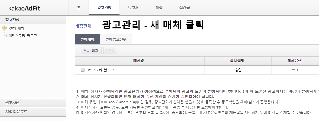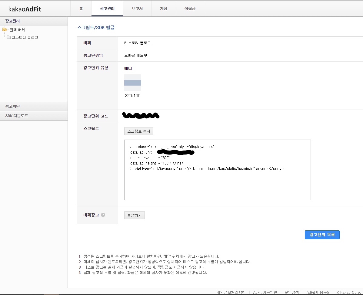 광고단위 등록을 클릭해주면 됩니다.