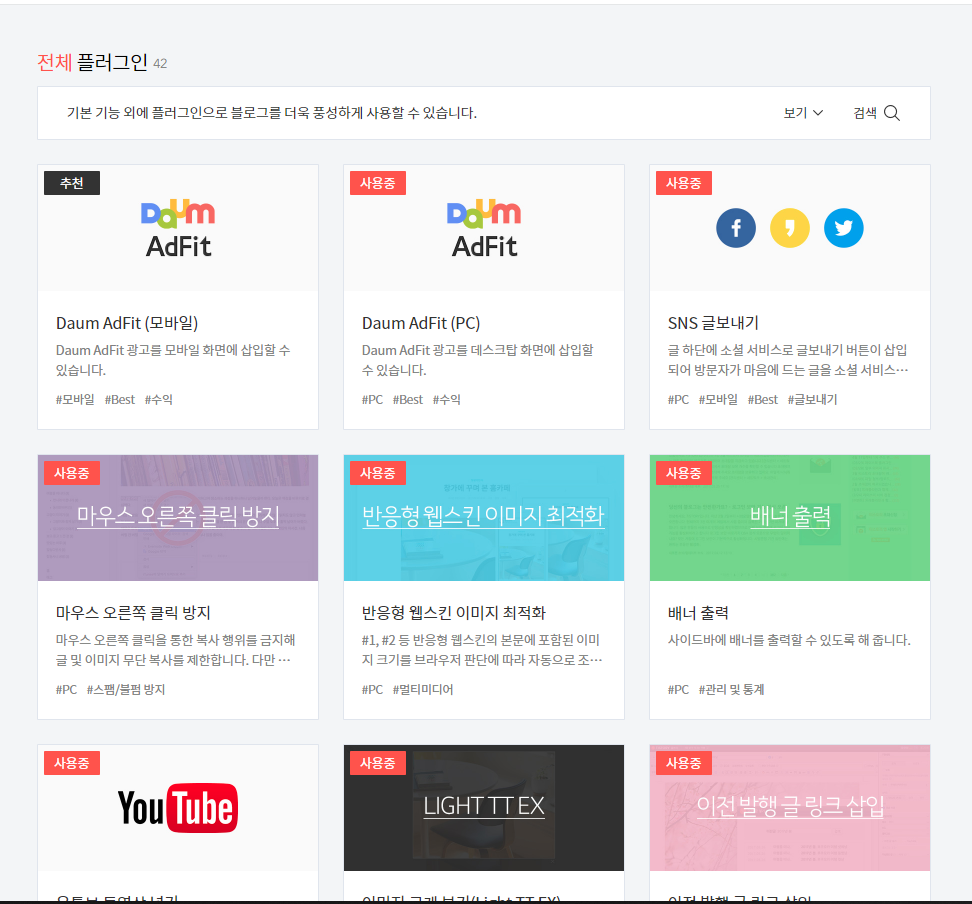 플로그인에 있는 Daum AdFit(PC)를 찾아서 눌러줍니다.