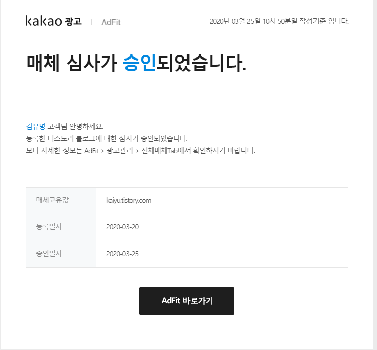 한번 카카오 애드핏을 신청해 보았습니다.