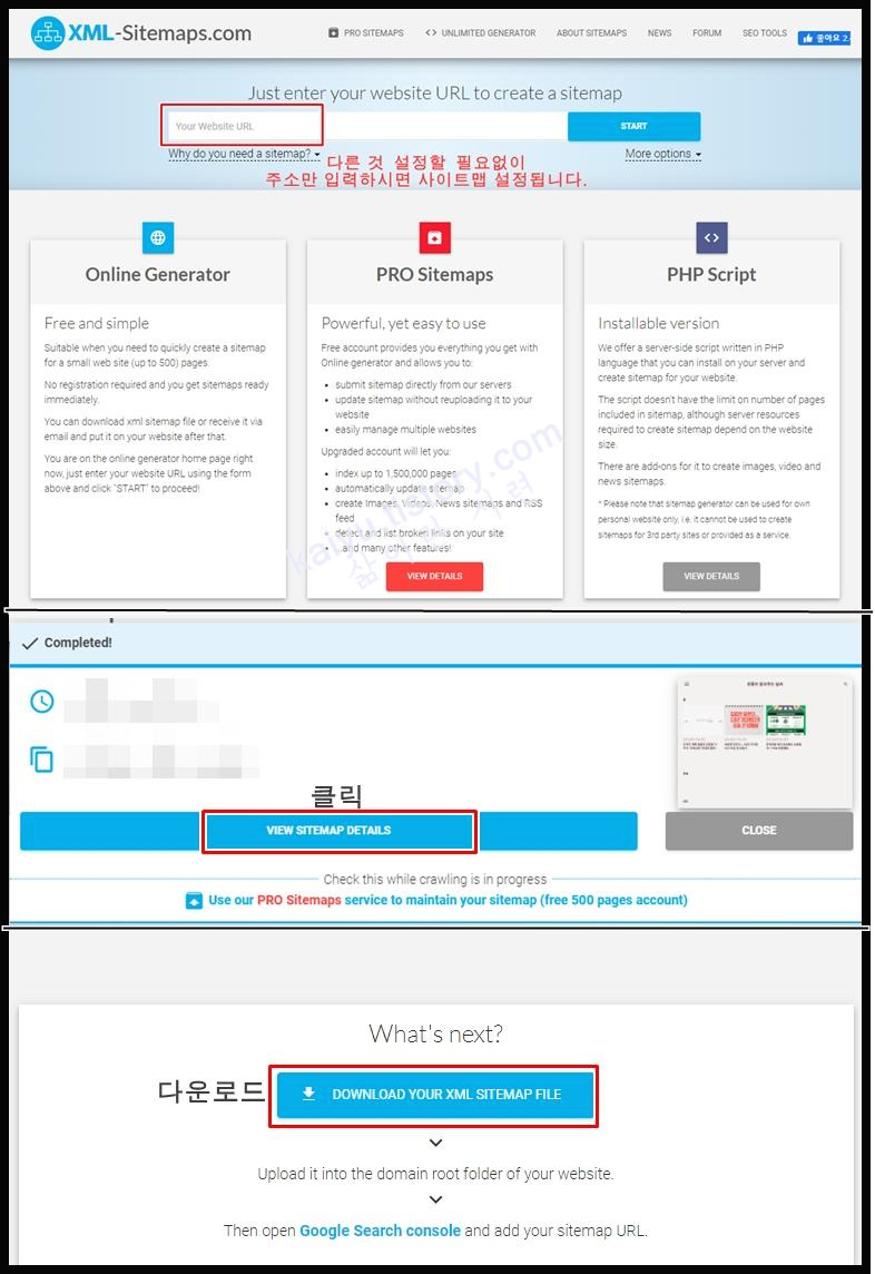 사이트맵 생성은 위 2개의 사이트 중에서 편하신 사이트에서 만들어 주시면 된답니다.