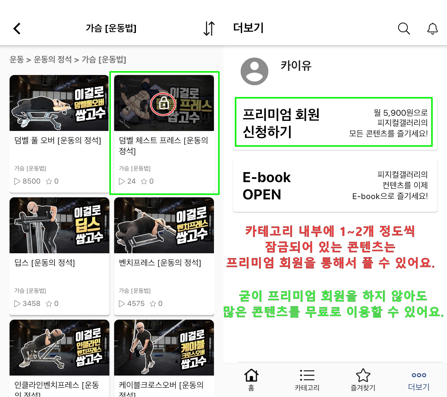 마지막으로 잠겨있는 콘텐츠를 모두 이용할려면 프리미엄 회원을 신청해야합니다. 하지만, 거의 대부분의 콘텐츠가 무료로 열려 있어서 필수요건은 아니랍니다.