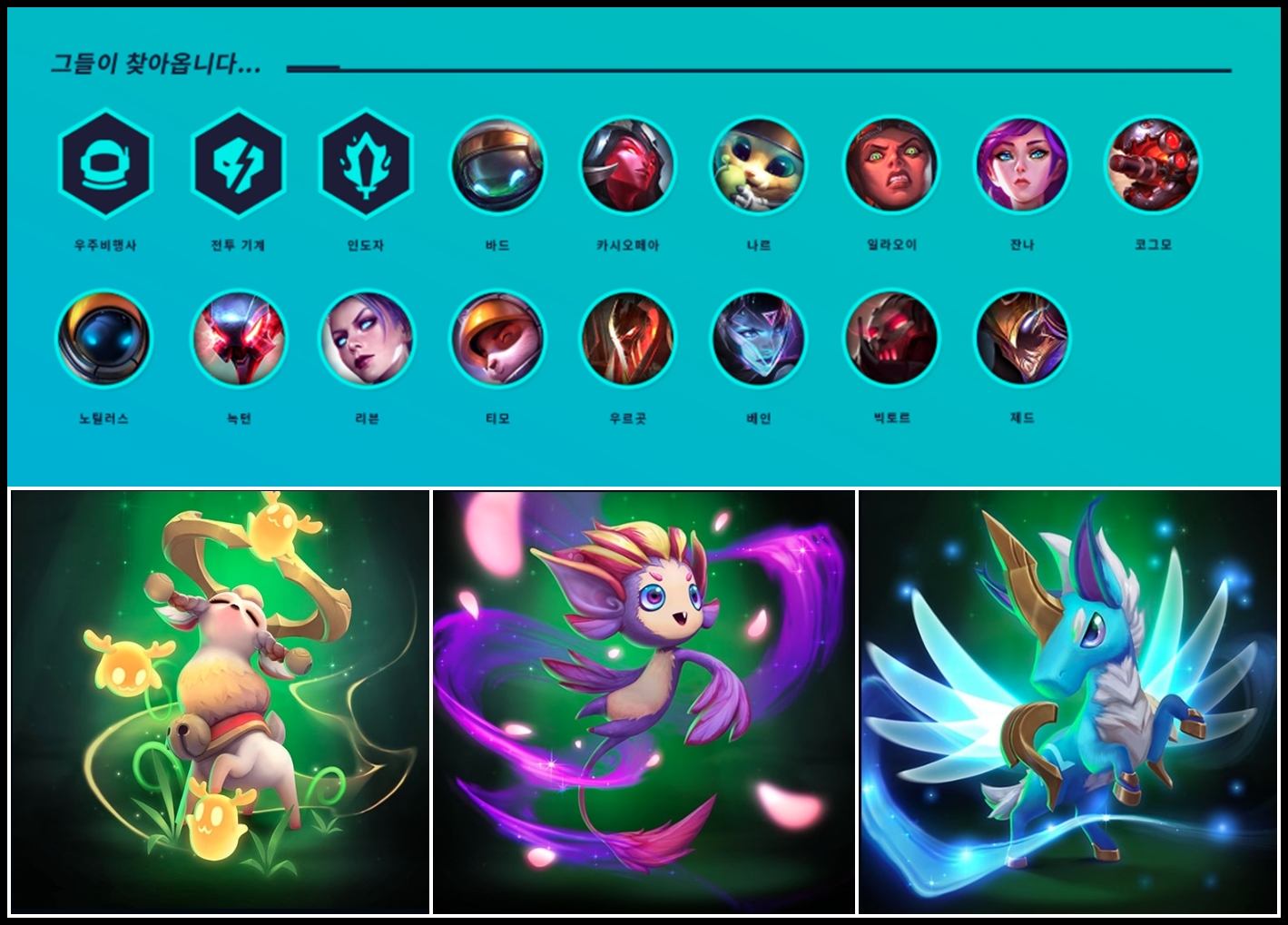 챔피언 - 카직스, 초가스, 벨코즈, 카이사, 케일, 미스포차, 소나, 럭스, 카사딘