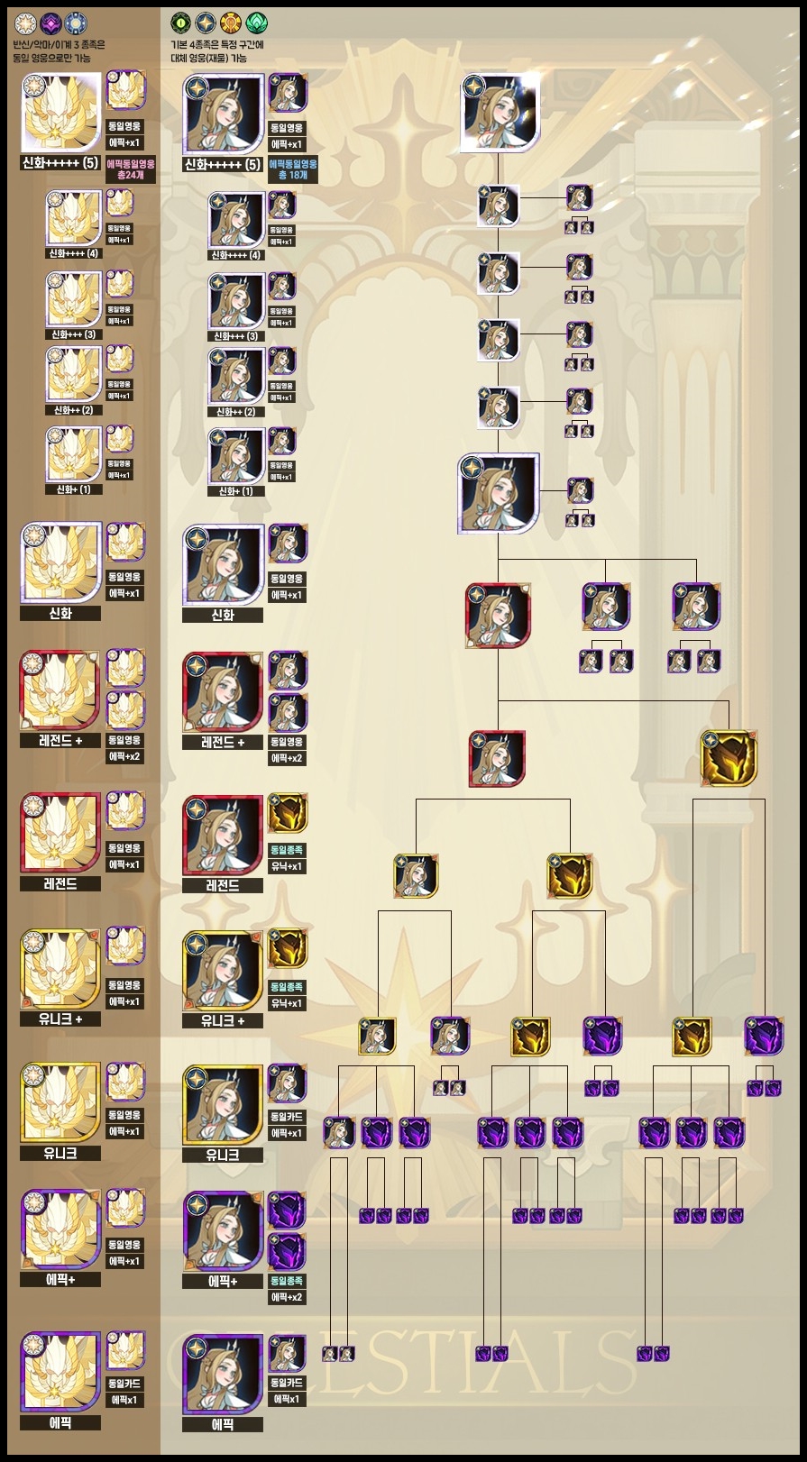 - 신화급 영웅 유닛 중 동일 영웅의 유니크 이상등급 2장이상 보유 했을때