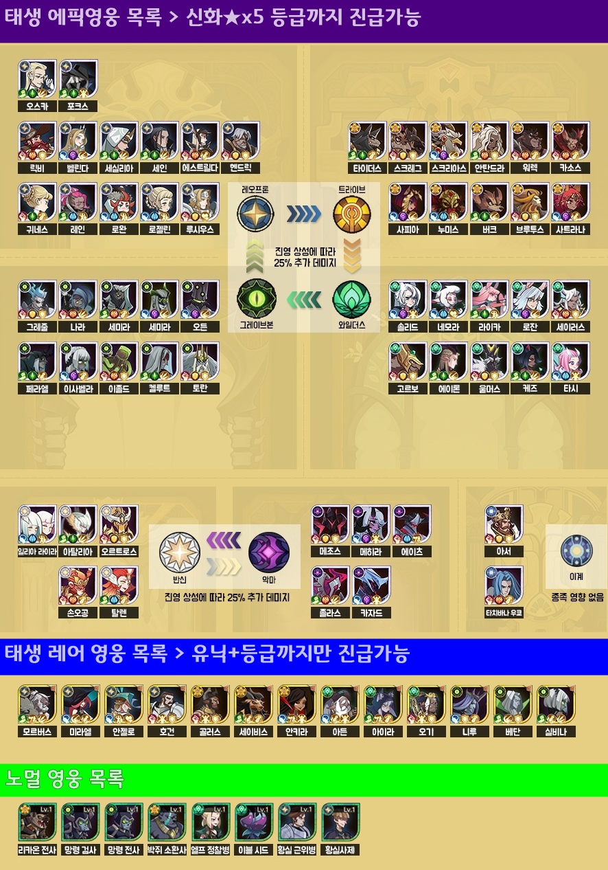 -영웅의 종족버프 및 진영 상성